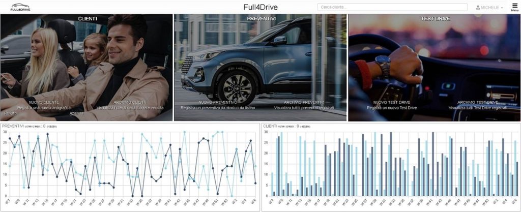 Il Full4Drive è un gestionale auto che aiuta le concessionarie e i rivenditori di veicoli a essere più competitivi sul web e più vincenti nelle trattative. Supportiamo le aziende del settore Automotive nella gestione rapida, accurata e strutturata dei preventivi e contratti per ottimizzare ogni fase del processo di vendita.